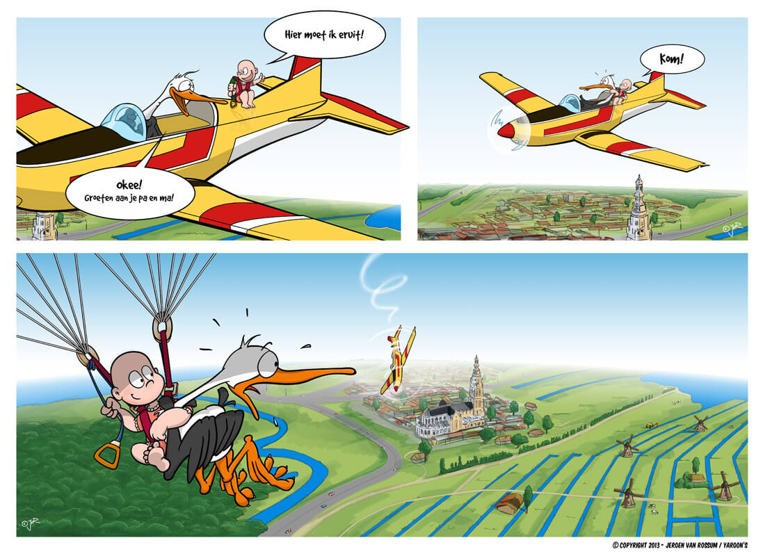 Tekenaar Jeroen van Rossum maakt cartoons en striptekeningen in opdracht voor allerlei reclamedoeleinden, voor T-Shirts, als boekillustraties enzovoorts. Na jaren van schetsen met potlood en inkten met penseel en Oostindische inkt hebben deze materialen plaatsgemaakt voor het digitale tekenscherm. Wilt u ook een cartoon laten maken?