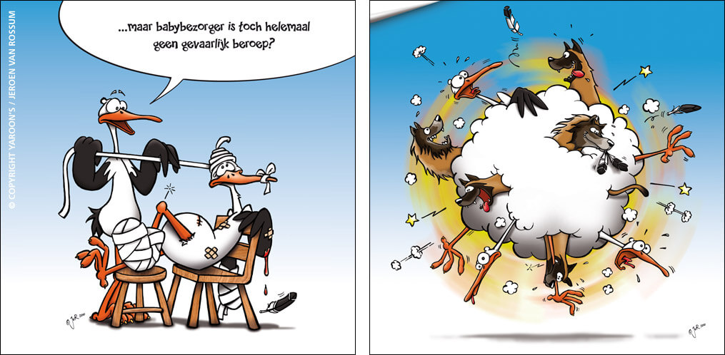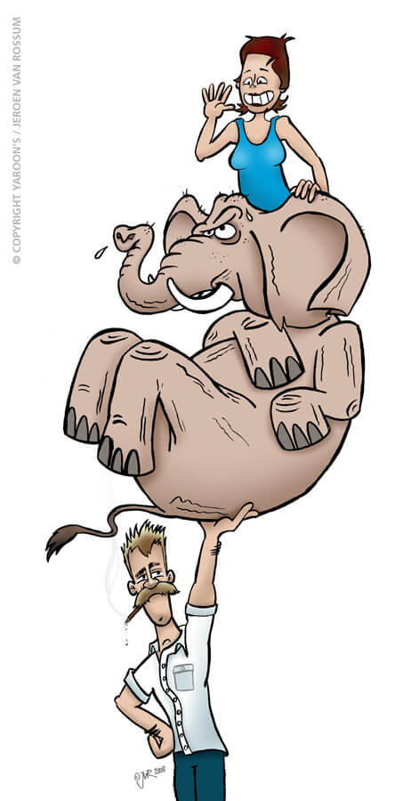 Cartoonist Jeroen van Rossum makes cartoons and comic drawings for various advertising purposes, for t-shirts, book illustrations, etc..